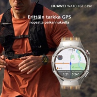 Huawei Watch GT6 Pro on 50 metrin vesitiivis älykello, jossa on yli 100 edistyksellistä urheilu- ja harjoittelutilaa, mukaan lukien uudet pyöräilyn tehomittarit, interaktiivinen golfkenttäkartta sekä parannetut kaksitaajuisen kuuden järjestelmän GNSS-algoritmit ja antennirakenne. Se vie pyöräilyn, golfin, polkujuoksun ja muut urheilulajit uudelle tasolle. Innovatiivisen korkeapitoisen piiparistojen ansiosta GT6 Pro:n akunkesto on jopa 21 päivää. Se yhdistää kuntoilu-, terveys- ja arjen sovellukset ja sopii niin päivittäiseen vapaa-aikaan kuin ammattimaiseen harjoitteluun.