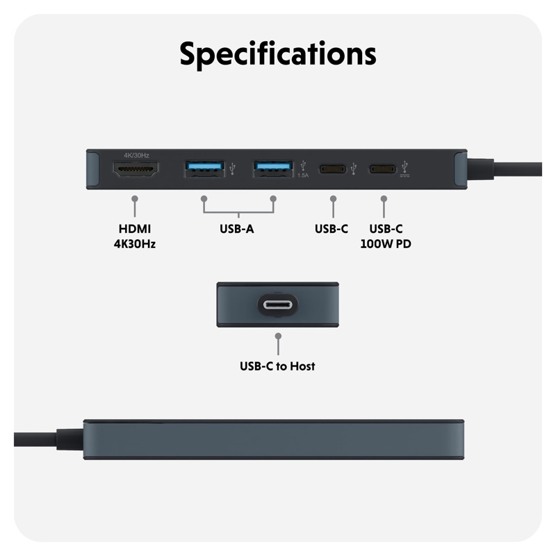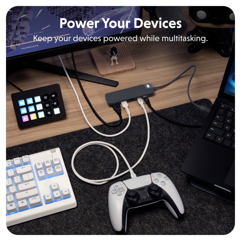 Lataa kannettava tietokone, tabletti ja muut laitteet tehokkaasti 100W USB-C Power Delivery -portin kautta – samalla kun muut laitteet pysyvät kytkettyinä.