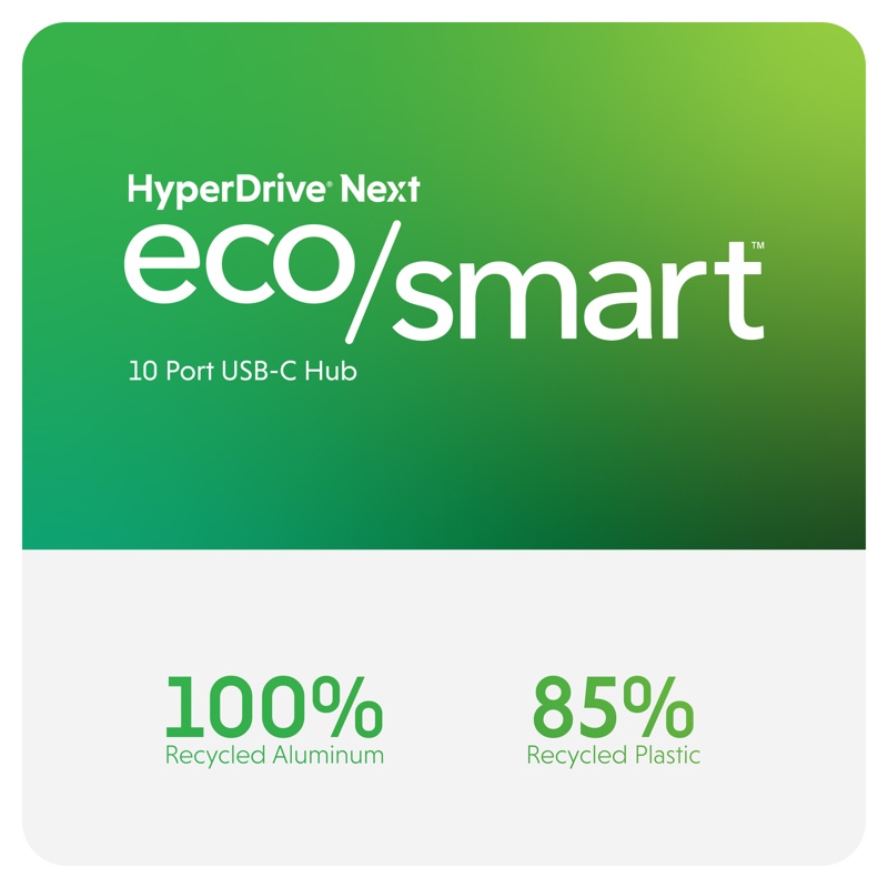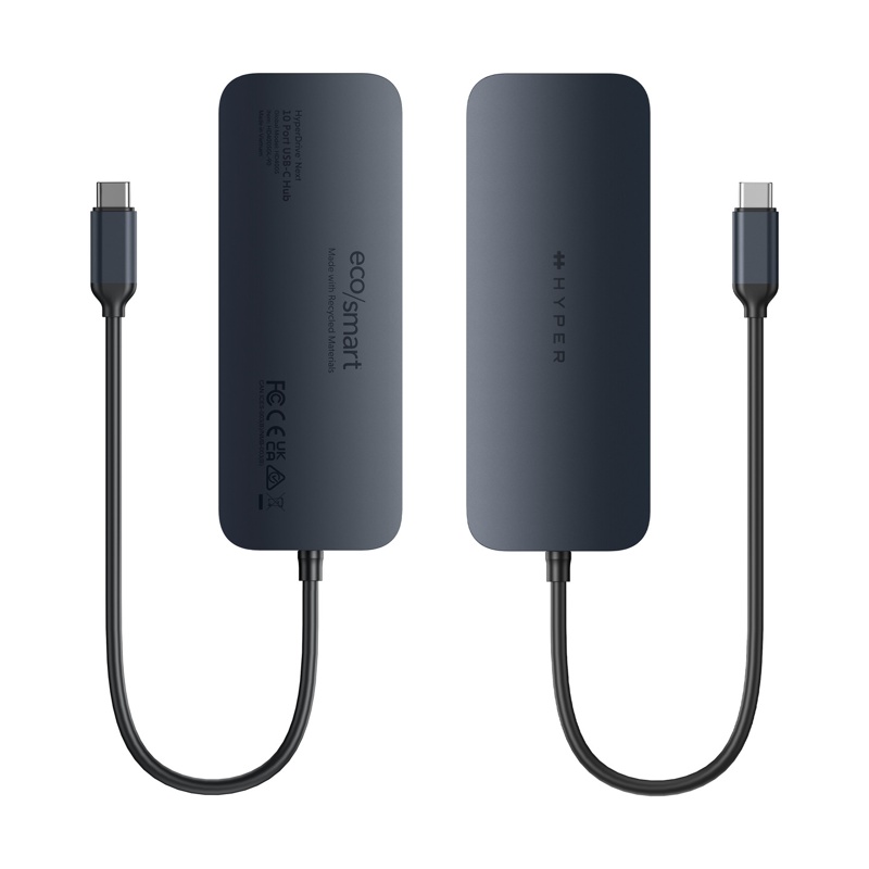 HyperDrive Next 10-porttinen USB-C -keskitin on nykyaikainen ratkaisu liitettävyyden laajentamiseen olit sitten sisällöntuottaja, valokuvaaja, toimittaja, tai muuten vaan haluat varautua monenlaisiin tilanteisiin. Laajenna keskittimen avulla työskentelyäsi yhdelle 4K 60 Hz:n erillisille lisänäytölle, käytit sitten Macbook:ia, iMac:ia, PC:tä tai Chromebookia. Erittäin nopeat 10 liitäntäporttia ja salamannopea tiedonsiirto säästävät aikaasi. Koe 2x nopeampi tiedostojen siirto 10 Gbps USB-porttien avulla ja 3x nopeampi valokuvien ja videoiden siirto microSD- ja SD 4.0 -kortilla. Hyödynnä 40% enemmän lataustehoa PD 3.1 140 W:n tehon läpiviennillä, joka varmistaa seuraavan sukupolven nopeimman latausnopeuden. Ulottuva 34 cm pitkä UCB-C liitäntäkaapeli. Teet myös ekologisesti kestävän ratkaisun valitsemalla HyperDrive Next -keskittimen, jotka on valmistettu 100% kierrätetystä alumiinista ja 85% kierrätetystä muovista. HyperDrive Next -tuotteet kuuluvat kestävästi valmistettujen EcoSmart tuotteiden sarjaan.