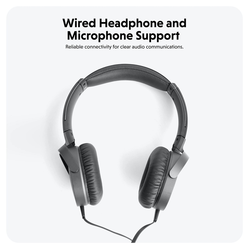 Luotettavan ja laadukkaan 3,5 mm yhdistelmä-ääniliittimen avulla voit käyttää langallisia kuulokkeita verkkokokouksissa tai pelisessioissa, tai käyttää ammattitason mikrofoneja tallentamiseen ja suoratoistoon.