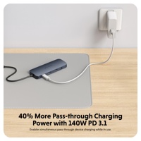 HyperDrive Next 11-porttinen USB-C -telakka on nykyaikainen ratkaisu liitettävyyden laajentamiseen olit sitten sisällöntuottaja, valokuvaaja, toimittaja, tai muuten vaan haluat varautua monenlaisiin tilanteisiin. Kahden 4K 60 Hz:n näytön tuki PC:lle ja Chromebookille, 11 erittäin nopeaa liitäntäporttia ja salamannopea tiedonsiirto säästävät aikaasi. Koe 2x nopeampi tiedostojen siirto 10 Gbps USB-porttien avulla ja 3x nopeampi valokuvien ja videoiden siirto microSD- ja SD 4.0 -kortilla. Kytke laturisi keskittimeen ja lataa laitteesi jopa 125 W:n teholla 140 W PD 3.1 -laturilla, kun kytkettynä PD 3.1 -tukevaan laitteeseen. Tämä varmistaa myös tulevaisuudessa laitteidesi maksimaalisen virransaannin ja tekee keskittimestä ihanteellisen virtaa kuluttaville laitteille. Teet myös ekologisesti kestävän ratkaisun valitsemalla HyperDrive Next -telakan, sillä se on valmistettu 100 % kierrätetystä alumiinista ja 85 % kierrätetystä muovista, ja se kuuluu kestävästi valmistettujen EcoSmart -tuotteiden sarjaan.