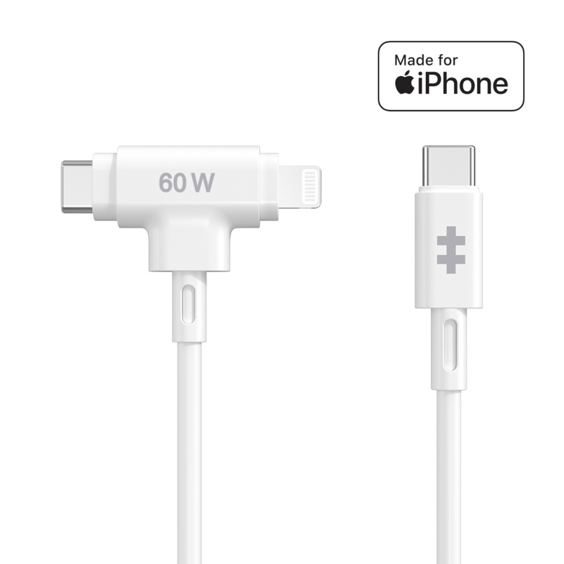 - USB-C to USB-C- ja Lightning -hybridisilikonikaapeli kaikkien USB-C- ja Lightning-liitäntäisten laitteidesi lataamiseen jopa 60W latausteholla