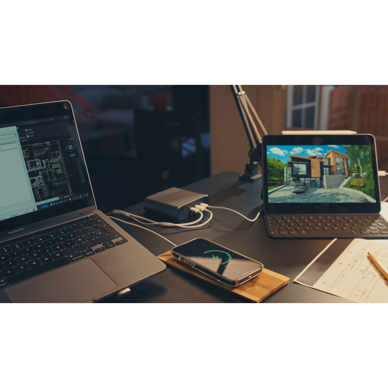 - Lataa jopa neljää laitetta samanaikaisesti – kukin jopa 100 W:n latausteholla