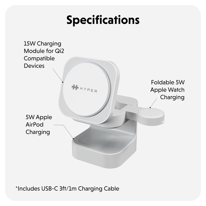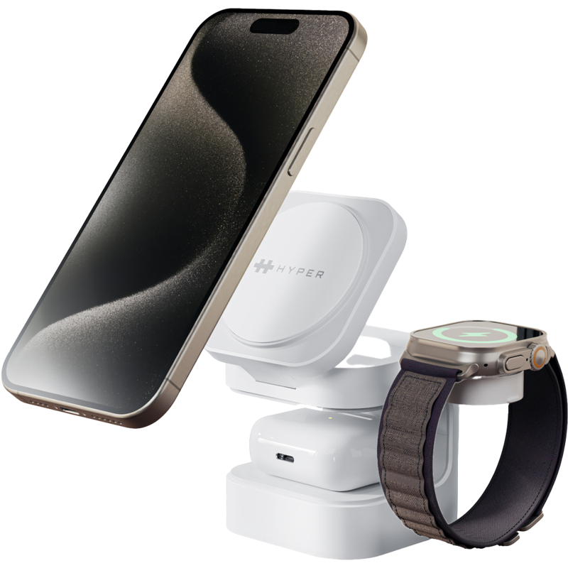 HyperJuice Qi2 3-in-1 Magnetic -lataustelineHJ3320WHGL