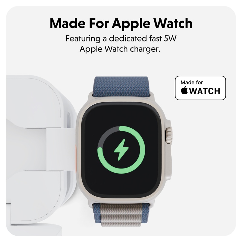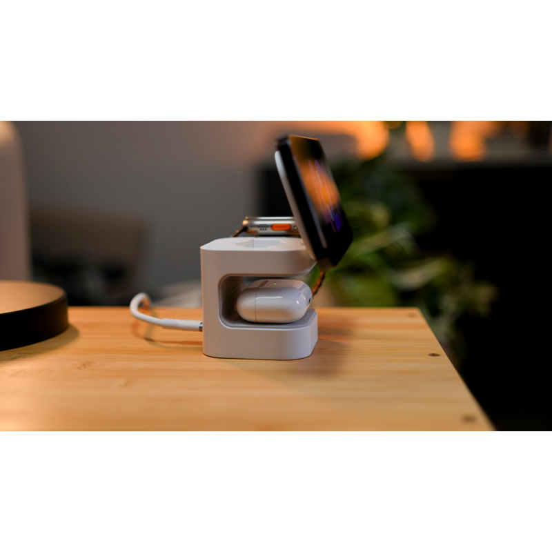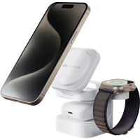 Laturien ja kaapeleiden kanssa ei tarvitse enää jonglöörata. Lataa samanaikaisesti iPhone (enintään 15W), Apple Watch (enintään 5W), AirPodit, tai jokin Qi-yhteensopiva laite (enintään 5W). Täydellinen Apple -käyttäjille, jotka haluavat varmistaa, että laitteet ovat aina ladattuina ja valmiina.