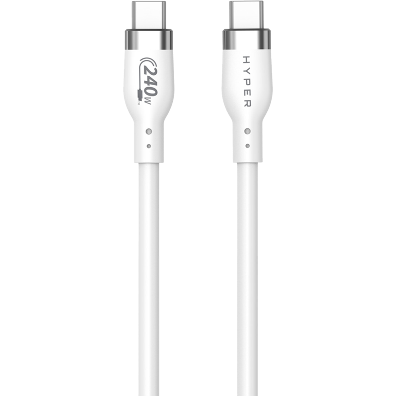 Solmuuntumaton pehmeäpintainen latausjohto, jolla lataat nykyiset, sekä tulevaisuuden tehokkaammatkin laitteet. Tällä HyperJuice 240W USB-C -kaapelilla lataat nopeasti ja tehokkaasti niin puhelimet, kuulokkeet ja power bankit, kuin myös kannettavan tietokoneen, kameroiden akut ja kaikki muut USB-C -ladattavat laitteet. PD 3.1 sertifiointi tarkoittaa, että johto tukee jopa 240W:n lataustehoa. Kaapeli on latauskeskeinen, mutta se soveltuu myös tiedonsiirtoon 480 Mt/s nopeudella (USB 2.0). Kaapelin materiaali on kestävää ja joustavaa silikonia, jonka ansiosta se kestää paremmin käyttöä ja kulumista verrattuna tavalliseen PVC-kaapeliin. Silikonikaapeli myös kestää paremmin lämpöä, kylmää ja kosteutta, joka tekee siitä pitkäikäisemmän ja mukavamman käyttää mm. kylmässä. Materiaalinsa ansiosta johto on myös käytännössä solmuuntumaton, joten se on helppo sulloa esim. taskuun mukaan ja tarvittaessa se on helposti käytettävissä.