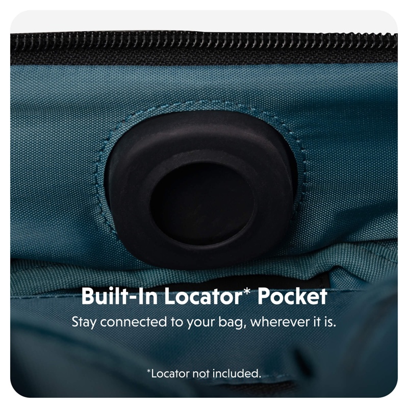 Sisäänrakennettu silikoninen tasku pitää seurantalaitteesi (kuten Apple AirTag, tai Hyper Universal FindMy Tracker - myydään erikseen) turvallisesti paikallaan - jolloin voit paikantaa laukun, jos se katoaa tai varastetaan.