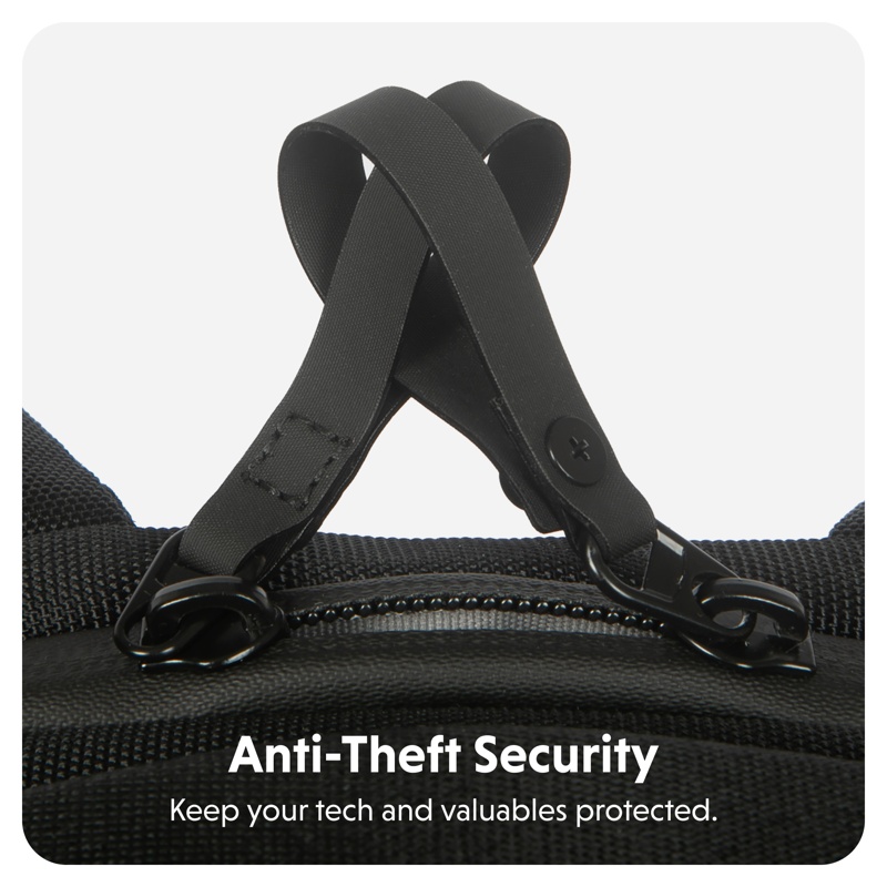 Piilotasku selkäpuolella ja pikalukittuvat vetoketjujen vetimet auttavat pitämään repun sisällön taskuvarkaiden ulottumattomissa.