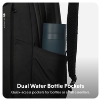 Kaksi sivuilla olevaa joustavaa taskua pitävät helposti ulottuvillasi vesipullot, kompaktin sateenvarjon, tai jonkun muun tarvitsemasi tavaran ilman, että sitä tarvitsee kaivaa repun sisältä.