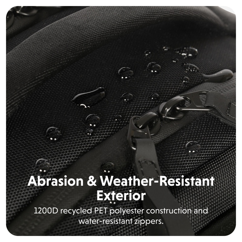 1200D kierrätetty RPET-polyesterimateriaali ja vedenkestävät vetoketjut tarjoavat maksimaalisen kestävyyden ja sääsuojan, pitäen laitteesi suojattuina ja kuivina.