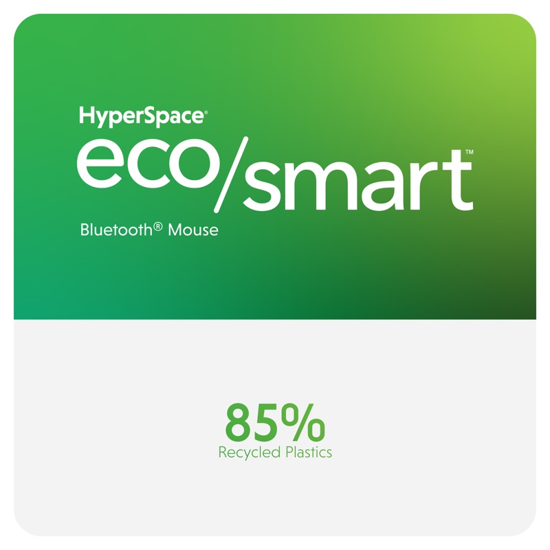 Valmistettu 85% kierrätysmateriaaleista – vastuullinen vaihtoehto moderniin työympäristöön. Tyylikkyyttä, tehokkuutta, mukavuutta ja vastuullisuutta – HyperSpace® Bluetooth® -hiiri on täydellinen kumppani nykyaikaiseen työskentelyyn.