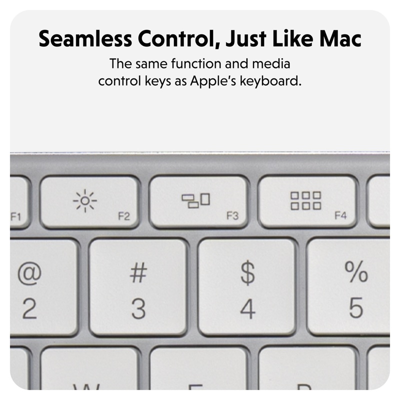 Alumiinirunko ja täysikokoinen näppäinasettelu sulautuvat saumattomasti esim. MacBookin ilmeeseen. Myös funktionäppäimet ja medianhallinta mukailevat Applen näppäinkomentoja.