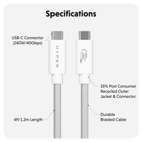 HyperDrive USB4 USB-C to USB-C 1,2 m -kaapeliHD6500WHGL