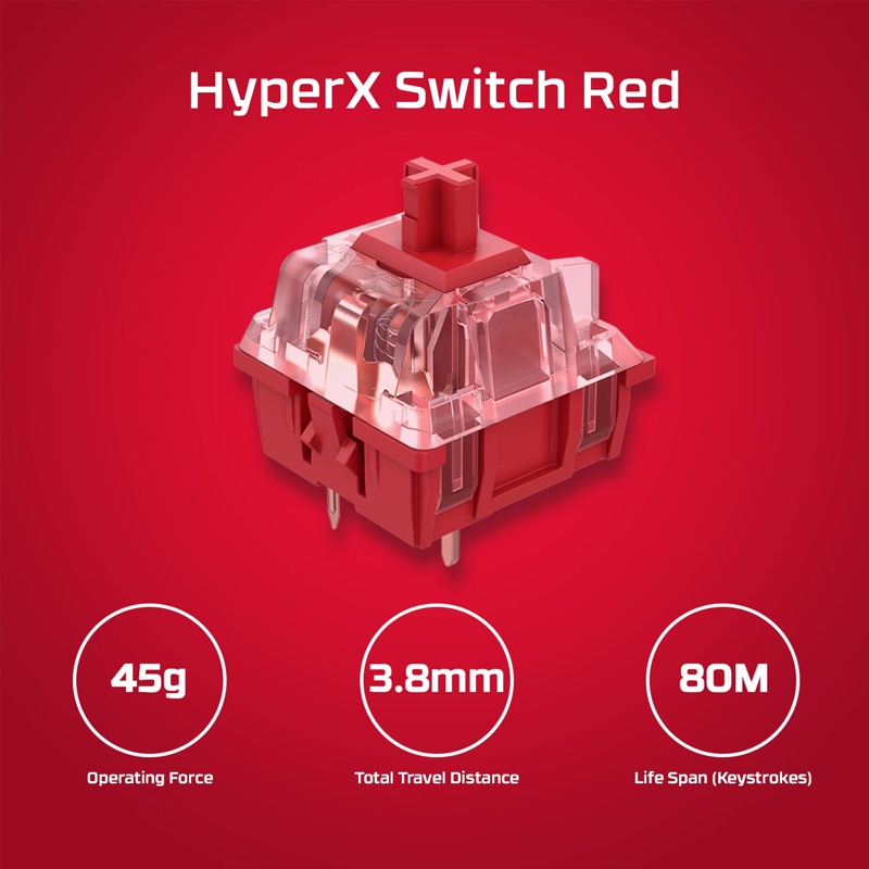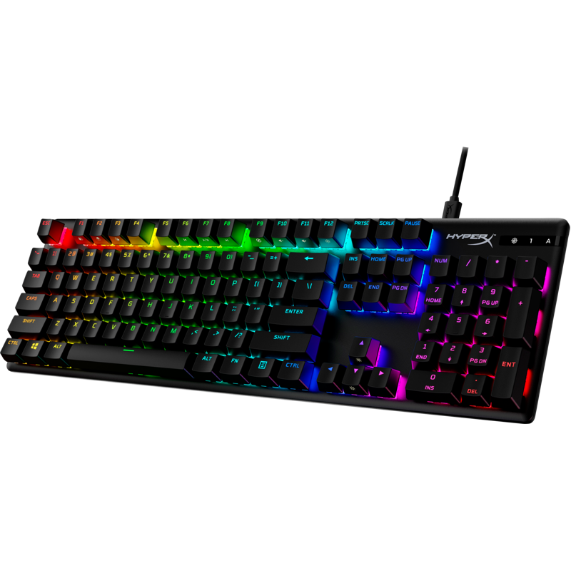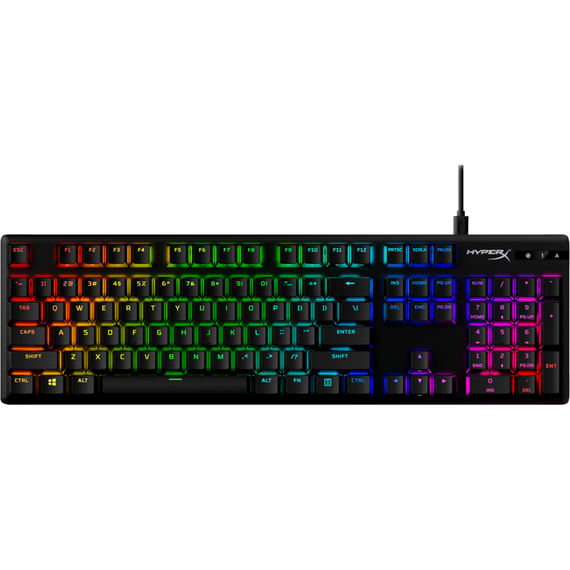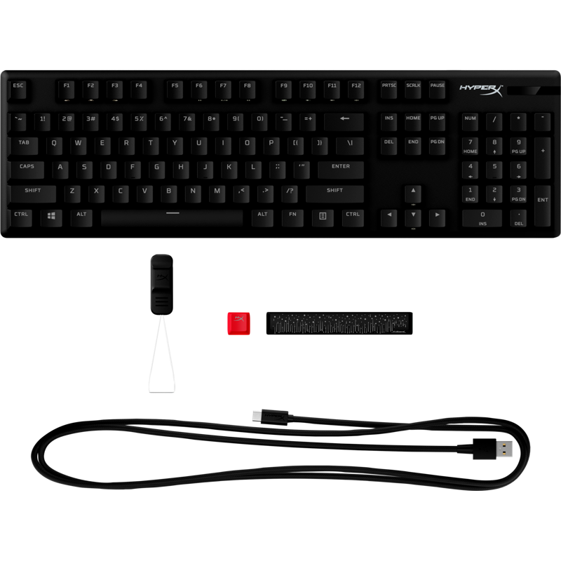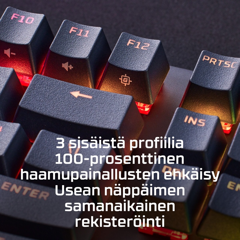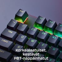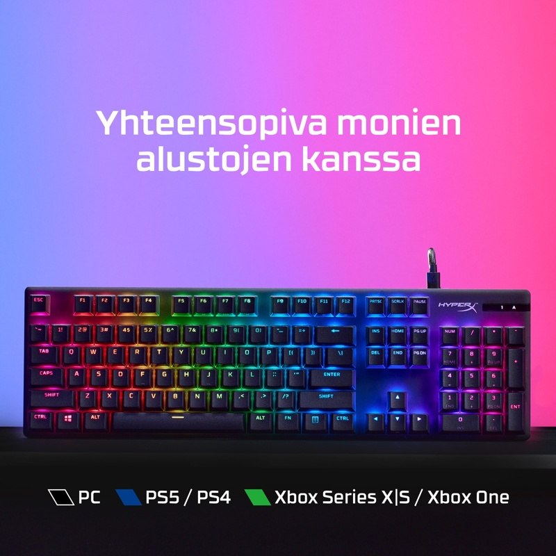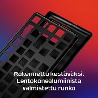 - Erittäin kompakti ja tukeva näppäimistö, jossa on räätälöidyt mekaaniset HyperX-kytkimet ja valmiiksi asennetut PBT-näppäinhatut