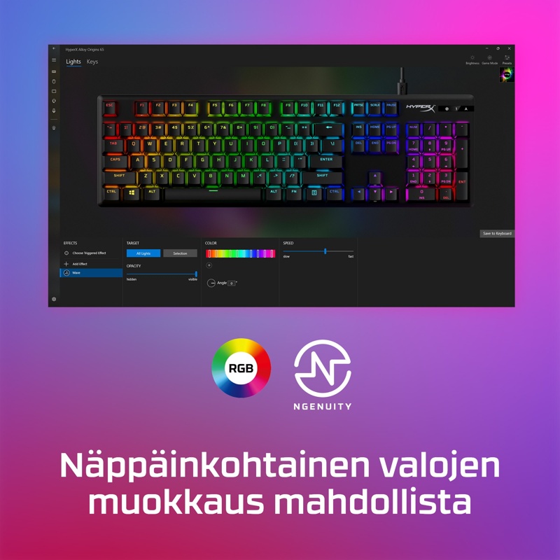 - 16 miljoonan värin RGB valaistus – helppo hallinta NGENUITY-ohjelmistolla
