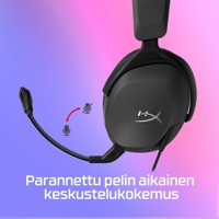 HyperX:n käyttöä helpottavat ominaisuudet, kuten kääntämällä mykistettävä mikrofoni, parantavat pelikokemustasi. Mikrofonin voi mykistää kätevästi kääntämällä sen ylös, pois tieltä.
