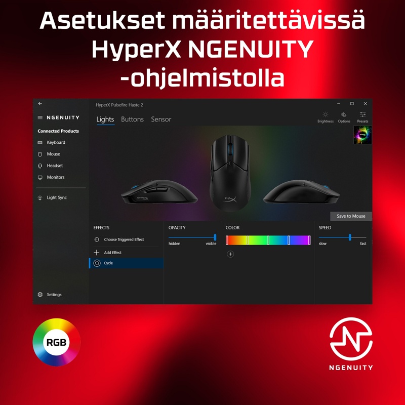 - HyperX 26K -sensori tarjoaa 26 000 DPI:n erottelukyvyn ja jopa 650 IPS seurannan