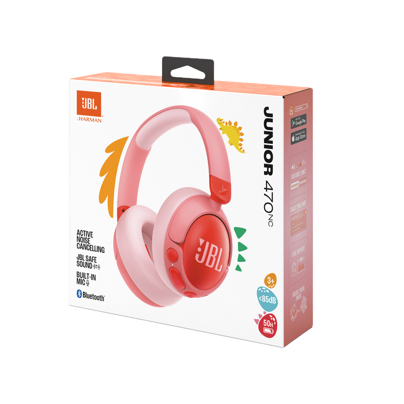 Langattomat JBL Junior 470NC -vastamelukuulokkeet tuovat JBL-äänen aivan uuden sukupolven ulottuville – äänenvoimakkuudella, joka on turvallinen korville. Ne eivät ylitä 85 dB:n rajaa, mikä suojaa nuoria kuuntelijoita vaarallisilta äänitasoilta, ja niissä on aktiivinen melunvaimennus, joten hälyisä ympäristö ei vaadi äänenvoimakkuuden nostamista. Voit käyttää JBL Headphones -sovellusta mukauttaaksesi lapsen enimmäisäänenvoimakkuutta ja päivittäistä kuunteluaikaa sekä saadaksesi päivittäisiä tai viikoittaisia raportteja hänen kuuntelutoiminnastaan. Lapsille suunniteltuja JBL Junior 470NC -kuulokkeita on mukava käyttää, ja niiden kestävien suurikokoisten säädinten käyttö sujuu pienimmiltäkin käsiltä. Jopa 50 tunnin* akun kesto tarkoittaa pitkäkestoista hauskanpitoa, ja sisäänrakennetun mikrofonin avulla lapset voivat helposti jutella perheen, ystävien tai opettajien kanssa. Ne ovat saatavilla kolmessa hauskassa värissä ja sisältävät JBL-tarrasarjan, jotta pienet rocktähdet voivat muokata tyyliään. Hyvällä äänellä ei ole ikärajaa (*kun aktiivinen melunvaimennus on pois päältä).