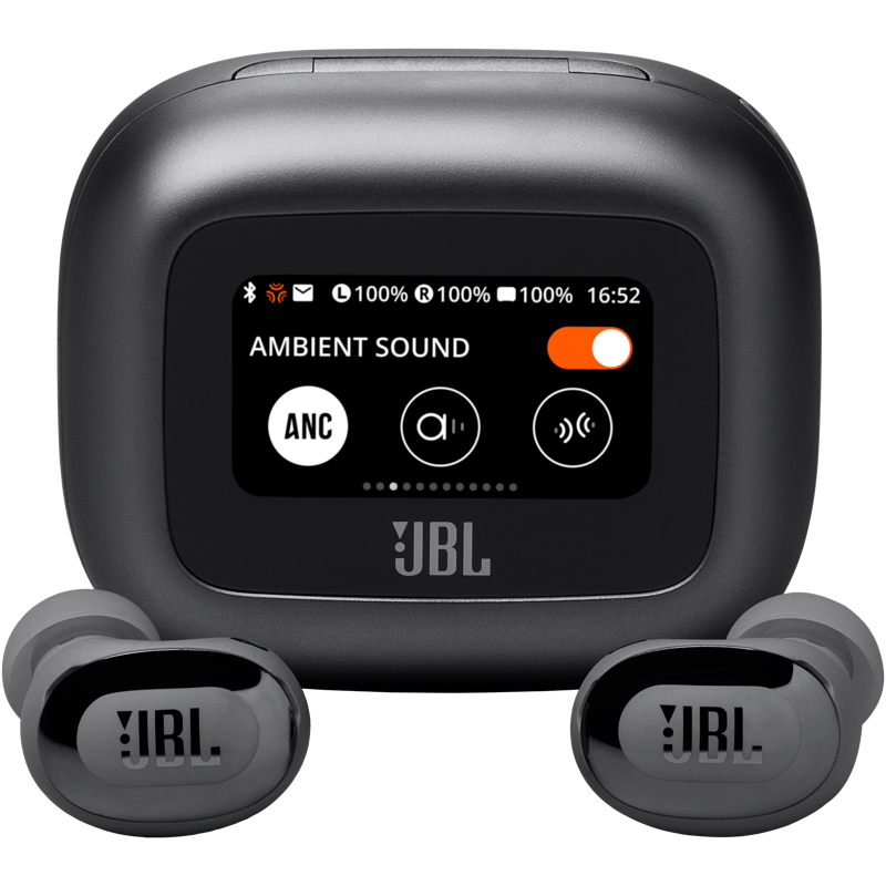 Kätevä, älykäs Smart Charging Case -latauskotelo – sovellusta ei tarvita. Voit mukauttaa JBL Live Buds 3 -kuulokkeiden jokaista yksityiskohtaa Smart Charging Case -latauskotelon 1,45 tuuman kosketusnäytöllä. Näytön avulla voit hallita ääntä kaikilla laitteilla – kannettavalla tietokoneella, televisiolla, älypuhelimella tai tabletilla – ilman JBL-sovellusta.