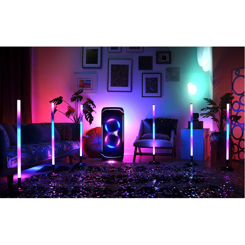 JBL PartyLight Stick lumoaa bileväen. Värikäs, energinen bilevalo synkronoituu välittömästi minkä tahansa JBL PartyBox -kaiuttimen kanssa ja kohottaa juhlatunnelmaa niin sisällä kuin ulkonakin sykkivällä, värikkäällä 360 asteen LED-valaistuksella. Anna juhlillesi lisäenergiaa sävyskaalalla, joka ulottuu viileistä hehkuista dance maniaan ja jossa liike, nopeus ja intensiteetti ovat kaikki helposti säädettävissä JBL PartyBox -sovelluksella. IPX4-roiskeenkestävä valo käynnistyy alle minuutissa – ja 8 tunnin langaton ladattava akku jaksaa yhtä kauan kuin juhlakansa. Vieraistasi tuntuu, että heidät on pudotettu keskelle futuristista musiikkivideota.