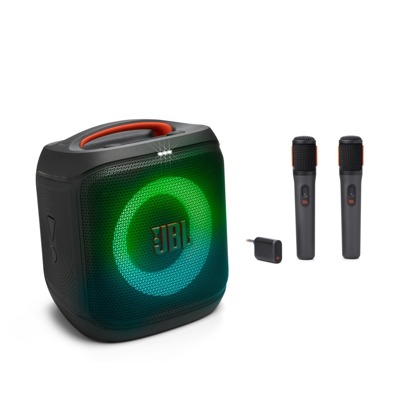 - Paketti sisältää Partybox Encore Essential 2 -kaiuttimen lisäksi langattomat PartyBox -mikrofonit (2 kpl)