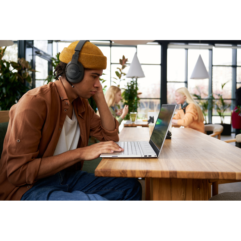 Keveys, mukavuus ja erinomainen ääni. JBL Tune 770NC -vastamelukuulokkeet on varustettu mukautuvalla ANC-melunvaimennuksella ja jopa 70 tunnin akun kestolla. Kun tarvitset nopeasti lisää virtaa, saat 3 lisätuntia kuunteluaikaa vain 5 minuutissa. Voit yhdistää kaksi Bluetooth-laitetta samanaikaisesti JBL Tune 770NC -kuulokkeisiin, joten voit kätevästi vastata puheluun kesken leffahetken. Ilmaisella JBL Headphones -sovelluksella voit räätälöidä äänen omiin mieltymyksiisi sopivaksi. Lisäksi voit valita käyttöösi äänikehotteet, jotka ovat saatavana omalla kielelläsi ja opastavat ominaisuuksien käytössä. Puheluita ja puheavustajaa voit hallinnoida helposti suoraan puhelimestasi, ja käyttämällä VoiceAware-toimintoa, kuulet oman äänesi kun puhut.