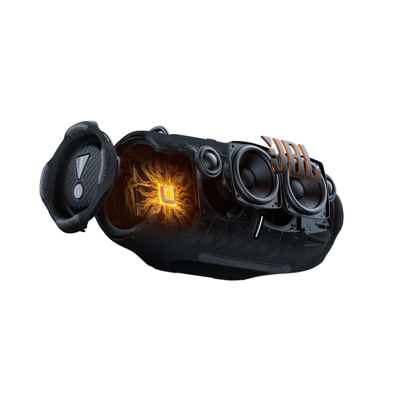 Kun haluat vielä suuremman JBL Pro -äänen, voit yhdistää kaksi Xtreme 4 -kaiutinta stereoliitännällä leveämpää äänentoistoa varten. Isommissa juhlissasi voit yhdistää useita JBL-kaiuttimia langattomasti Auracastin avulla. Lisäpotkua kemuihin saat myös JBL PartyBoostilla, kun yhdistät Xtreme 4:n ja muita JBL PartyBoost -yhteensopivia kaiuttimia JBL Portable -sovelluksella.