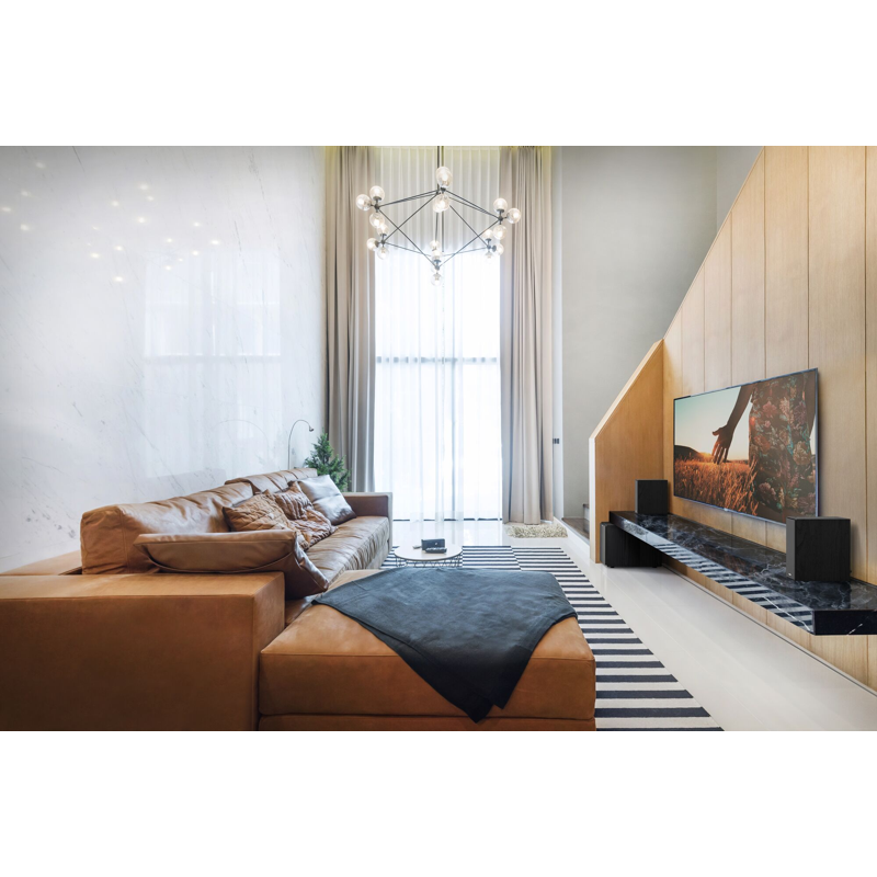 Kaukosäädin ja 2 x AAA -paristoa, 4 m kaiutinkaapelia, 2 m virtakaapeli, 2 m USB-A to USB-B -kaapeli