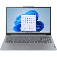 - Pikalataustekniikan ansiosta IdeaPad Slim 3 Gen 8 ‑kannettava tarjoaa 2 tuntia käyttöaikaa 15 minuutin latauksella