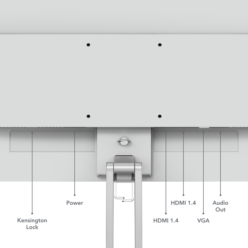 Paranna mukavuutta ja tuottavuutta VESA-kiinnityksen yhteensopivuudella (100x100). Kiinnitä näyttö helposti seinätelineisiin, näyttövarsiin tai pöytäkiinnikkeisiin ja löydä tilaasi ja tyyliisi sopiva katseluasento.