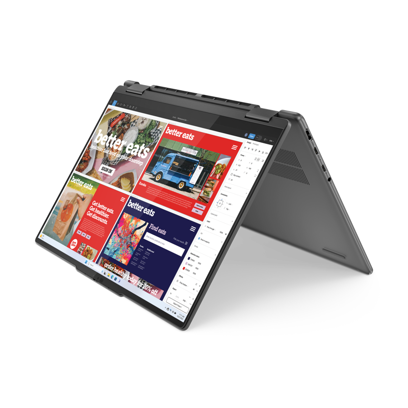 - 14" OLED-kosketusnäytön ja 360 astetta kääntyvän saranan ansiosta voit käyttää läppäriä myös tablettina
