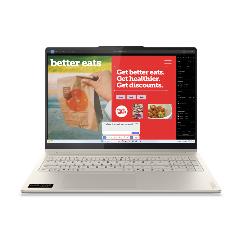 Lenovo Yoga 7 2-in-1 16” kannettavan voimanlähteenä toimii AMD Ryzen AI 7 350 -suoritin, joka on uskomattoman älykäs ja suorituskykyinen. Tämä kannettava soveltuu niin perinteiseen arkiseen surffailuun, opiskeluun, nopeaan 3D-mallinnukseen, renderöintiin ja reaaliaikaiseen visualisointiin. Voit käyttää sitä siis mihin tahansa, missä tahansa. Runsas 32 Gt keskusmuisti takaa sujuvan moniajon ja mahdollistaa raskaampienkin projektien tekemisen ilman turhia viivästyksiä.