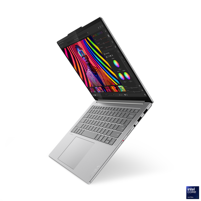 Lenovo Yoga Pro 7 14” suorituskyvystä vastaa Intel Core Ultra 7 255H -prosessori ja 32 Gt keskusmuisti. Lenovo X Power tehostaa suorittimen, grafiikkaprosessorin ja keskusmuistin toimintaa ja optimoi älykkäästi suorituskyvyn vaativiin tehtäviin. Kaksoistuulettimet ja 75W TDP pitävät laitteen viileänä ja huolehtii ettei laite kuumene vaativammissakaan projekteissa.