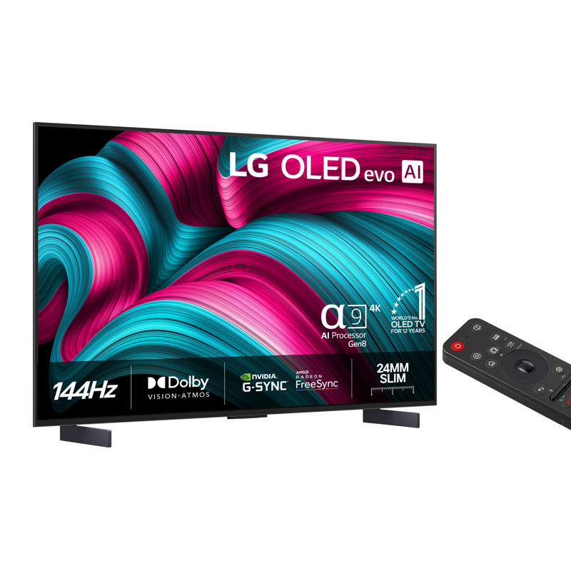 Pelaajille suunnitellussa OLED evo C5 -televisiossa on 144 Hz:n G-Sync- ja FreeSync-tuki, joka poistaa kuvan repeämisen ja tekee liikkeestä silkinpehmeää. LG:n Game Optimizer- ja Dashboard-toimintojen avulla voit hienosäätää asetuksia reaaliajassa parhaan suorituskyvyn takaamiseksi. Salamannopea 0,1 ms:n vasteaika ja alhainen viive antavat kilpailuetua, kun taas henkeäsalpaavat OLED-kuvat tekevät jokaisesta maailmasta mukaansatempaavamman.