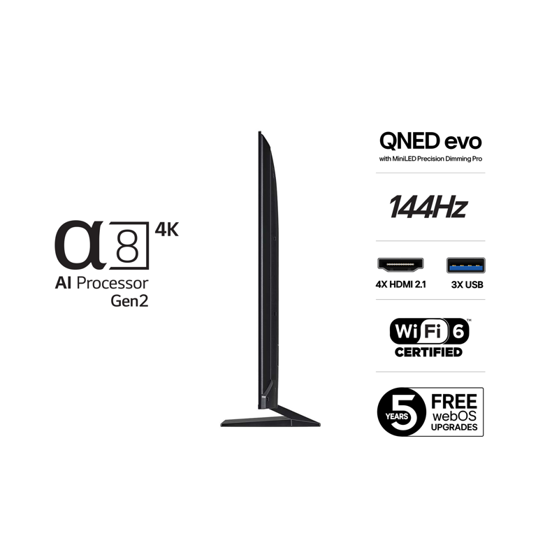 - LG 4K QNED MiniLED Smart TV tarjoaa upeat värit, syvän kontrastin ja mukaansatempaavan kuvan QNED evo -teknologialla ja Dynamic Tone Mapping Pro -toiminnolla