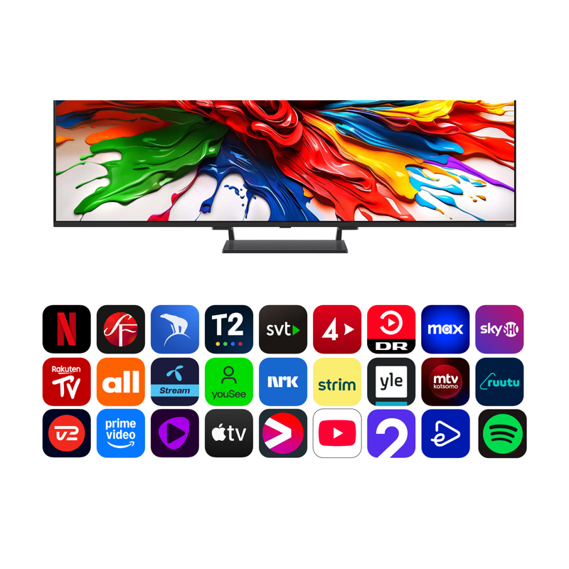 Tämä tarkoittaa α8 AI Processor 4K -prosessorin, korkealla kuvataajuudella varustetun näytön ja QNED-television värejä parantavan näyttöteknologian yhdistelmää. Kaikissa QNED evo -televisioissa on nämä toiminnot. Tämä takaa 100 % värivolyymin, merkittävän väriskaalan laajenemisen viime vuoden malliin verrattuna ja Dolby Vision -tuen.