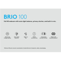 Näytä ja kuulosta paremmalta videokokouksissa Brio 100 -web-kamerann avulla. Se on yksinkertainen ja helppokäyttöinen verkkokamera, jonka avulla näytät hyvältä videopuheluissa. Täysteräväpiirtoinen 1080p-tarkkuus ja automaattinen valotasapaino tuovat puheluihisi selkeyttä ja kirkkautta, jotta näytät hyvältä. Kuulostat paremmalta sisäänrakennetun mikrofonin ansiosta, ja integroitu suljin takaa täydellisen yksityisyyden.