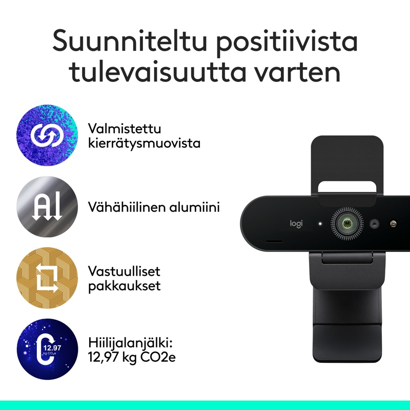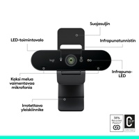 Brio 4K ‑verkkokameralla voit neuvotella, suoratoistaa ja tallentaa missä tahansa valaistuksessa ja näyttää aina ammattimaiselta. RightLight 3 ja HDR mukautuvat automaattisesti hämärään, suoraan auringonvalon tai suureen kontrastiin, jotta keskipisteessä olet aina sinä.
