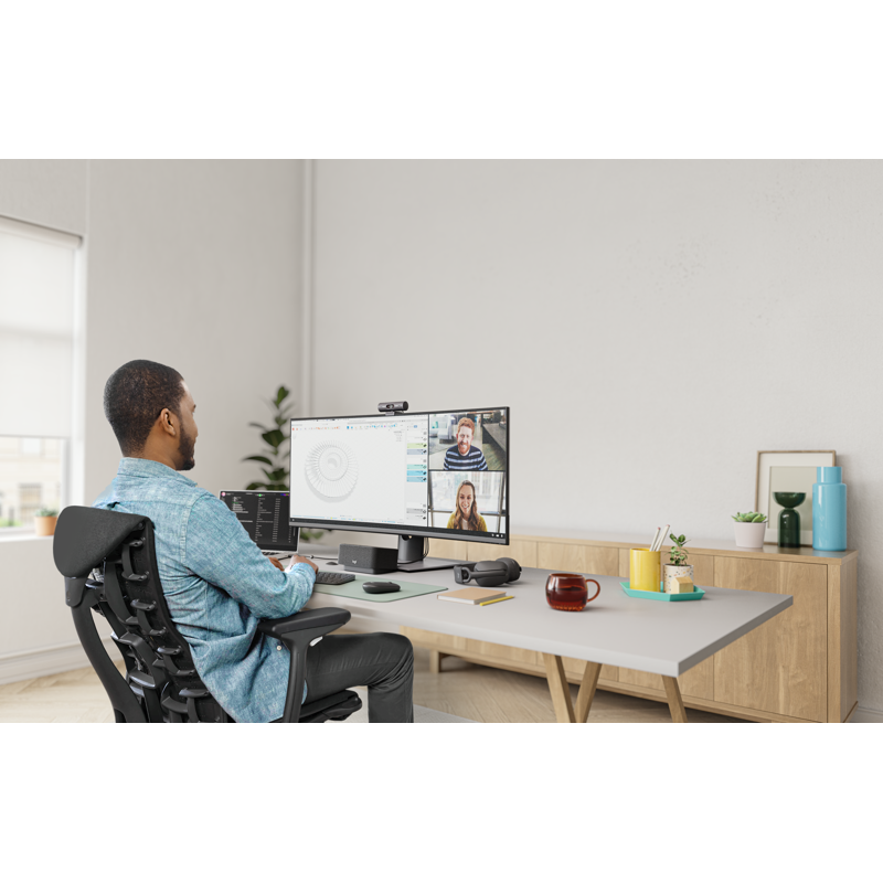 Brio 500:n avulla näytät ja kuulostat itseltäsi joka tapaamisessa. Automaattinen valaistuksen korjaus auttaa sinua näyttämään terävältä valaistuksesta riippumatta. Automaattinen rajaus keskittää kameran esityksen aikana. Näyttötila puolestaan mahdollistaa työpöydälläsi olevan materiaalin nopean jakamisen. Nauti luonnollisista kokouksista ja esiinny eduksesi. Integroitu, helppokäyttöinen suojasuljin peittää kameran kokonaan, kun et halua tulla nähdyiksi.