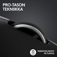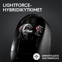 Ainutlaatuinen Logitechin optis-mekaaninen hybridikytkintekniikka yhdistää optisten kytkinten nopeuden ja luotettavuuden sekä perinteisen galvaanisen (tai mekaanisen) mikrokytkimen alhaisen virrankulutuksen ja tyydyttävän napsautustuntuman. Saat ammattilaisten tarvitseman suorituskyvyn ilman, että se vaikuttaa akun kestoon.
