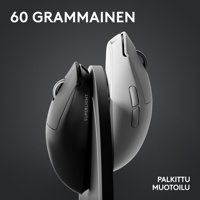 Langaton PRO X SUPERLIGHT 2 -pelihiiri, USB-LIGHTSPEED-sovitin, USB-A–C-lataus- ja tiedonsiirtojohto, jatkosovitin, valinnainen pitoteippi, valinnainen luukku ja PTFE-tassu, käyttäjän dokumentaatio