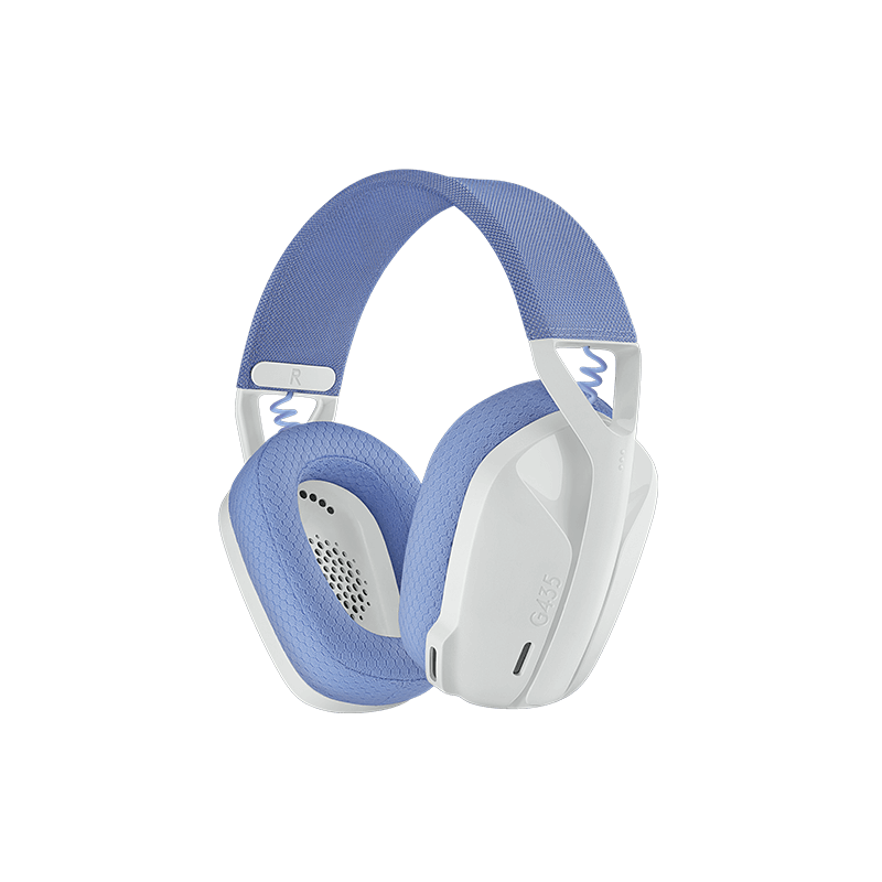 Logitech G435 -pelikuulokkeet painavat vain 165 grammaa – tarpeeksi kevyet ja mukavat koko päiväiseen käyttöön. Kuulokkeiden malli istuu hienosti useimmille, mutta on suunniteltu käyttömukavaksi pienemmälle päänkoolle.