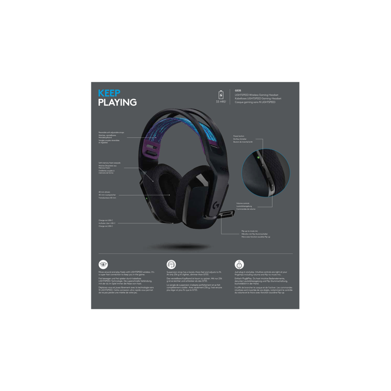 Optimoi peliaikasi helppokäyttöisellä, langattomalla plug and play -pelikuulokemikrofonilla. G535 käyttää USB-vastaanotinta, joka on yhteensopiva tietokoneiden ja PlayStationin kanssa.