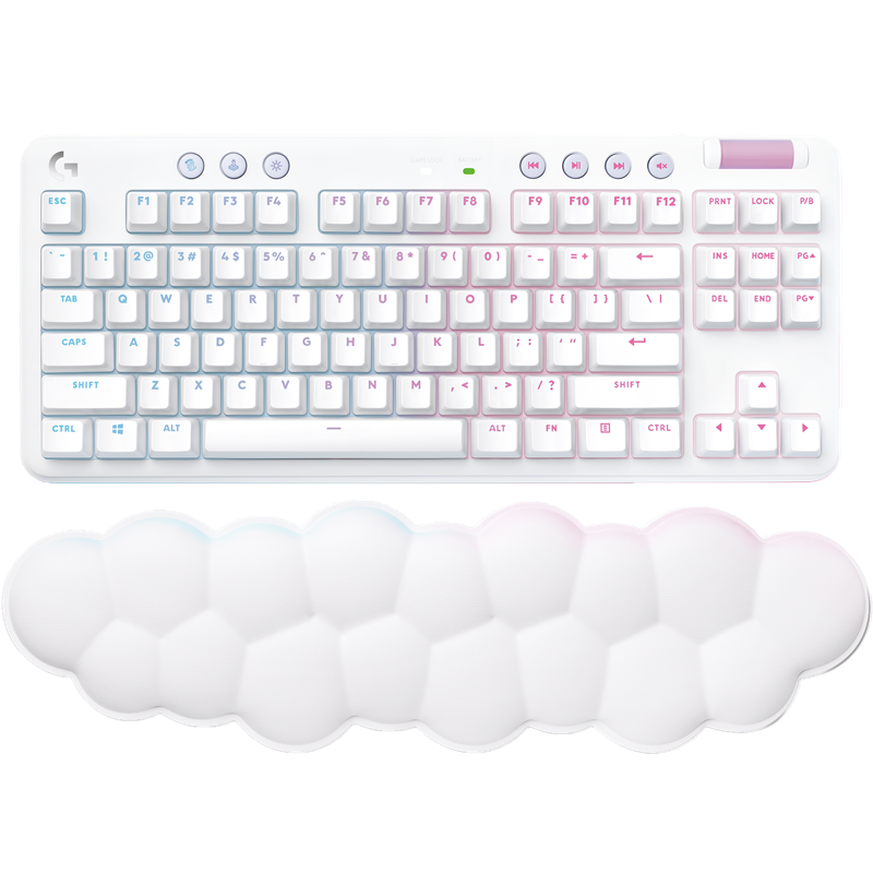 Aurora-valikoimaan kuuluva pieni ja mukava langaton G715 TKL -pelinäppäimistö on hillitty mutta suorituskykyinen laite, jonka avulla ilmaiset itseäsi ja pelaat omalla tavallasi. Sen pilvenpehmeä kämmentuki tuntuu mukavalta myös pidempien pelisessioiden aikana ja yhdessä valkoisen ulkoasun kanssa näppäimistö liidättää sinut unelmiisi. Kompaktin numeronäppäimistöttömän koon ja säädettävän korkeuden ansiosta näppäimistö soveltuu hyvin pidempiin pelihetkiin. Laitetta koristaa kaunis Lightsync RGB -valaistus näppäimissä ja reunoissa. Näppäimistössä on mekaaniset GX-kytkimet, mukautettava kotelo ja näppäinhatut.
