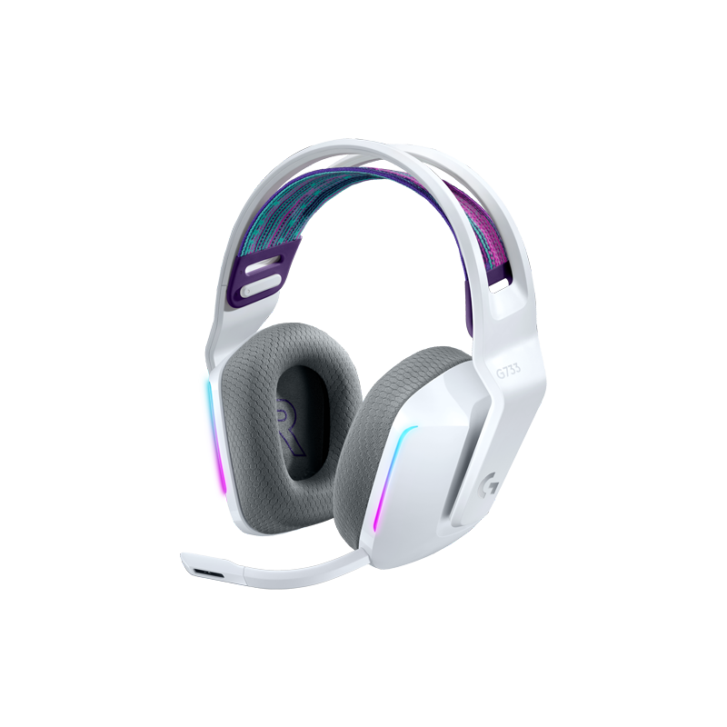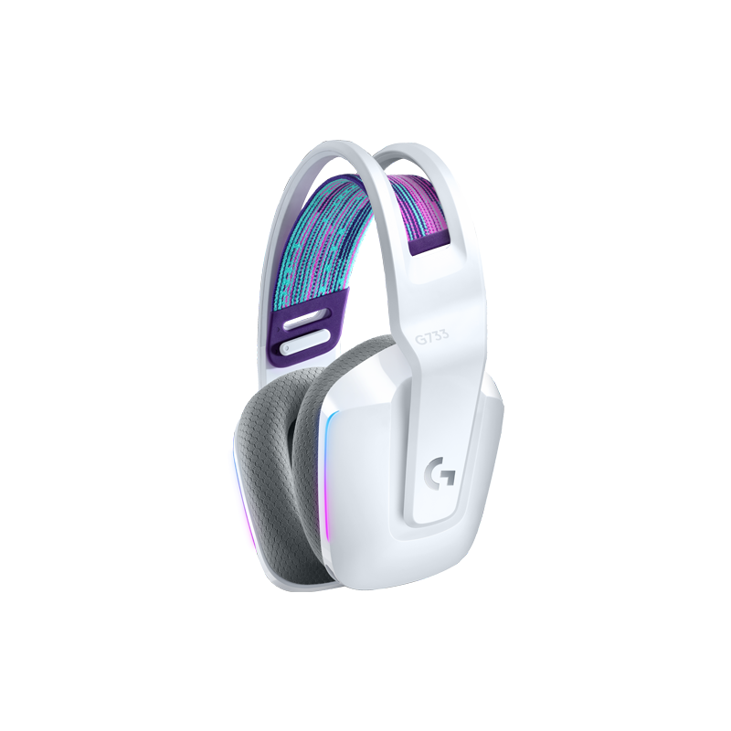G733 Lightspeed -pelikuulokkeilla pelaat omalla tavallasi. Kuulokkeet ovat langattomat ja mukavasti muotoillut. Värikäs, käännettävä ja jännitetty pantaosa on mukava ja varmistaa, että kuulokkeet istuvat juuri sopivasti päähäsi. Kuulokkeiden kaksikerroksinen muotoutuva vaahtomuovi mukautuu pehmeästi päähäsi vähentäen rasitusta ja takaa miellyttävän käyttömukavuuden pitkiinkin pelisessioihisi. G733 Lightspeed -pelikuulokkeet ovat huippukevyet, sillä painoa on vain 278 grammaa.