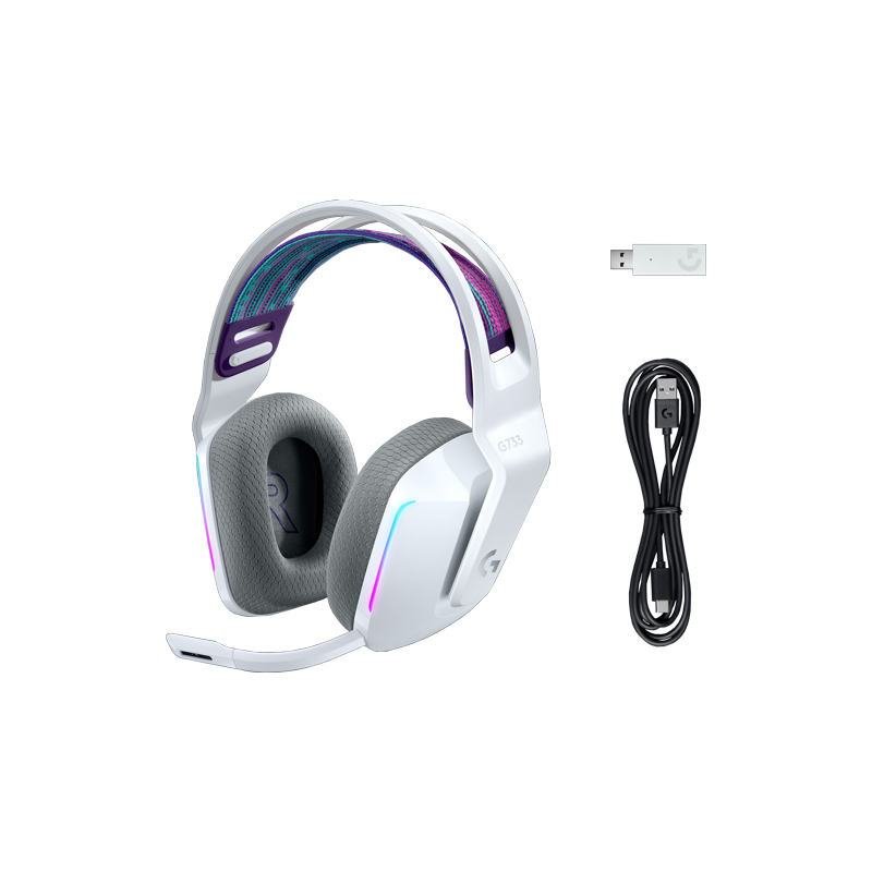 G733 Lightspeed -pelikuulokkeilla saat täyden langattoman vapauden jopa 20 metrin kantamalla ja Lightspeed-äänilähetyksellä. Pitkän, jopa 29 tunnin, akunkeston ansiosta voit huoletta rentoutua ja uppoutua peleihisi, musiikkiisi ja elokuviisi. Ilmaisen G Hub -ohjelmiston avulla voit mukauttaa äänet ja luoda makusi mukaisen Lightsyng RGB -valaistuksen noin 16,8 miljoonan värin valikoimasta sekä reaaliaikaiset Blue VO!CE -äänisuodattimet. Logitech G733 Lightspeed -pelikuulokkeet ovat USB-vastaanottimen avulla yhteensopivat PlayStation 4, PlayStation 5 ja Nintendo Switch -pelikonsoleiden kanssa. Kuulokkeet toimivat Nintendo Switchin kanssa, kun konsoli on Nintendo Switch Dock -telakassa.