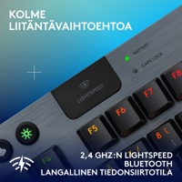Huolellisesti suunniteltu matalaprofiilinen langaton G915 X LIGHTSPEED TKL -pelinäppäimistö sisältää uusimpia peliteknologian innovaatioita ja huolella valikoituja materiaaleja. Kolme liitäntävaihtoehtoa – luokkansa paras 2,4 GHz:n langaton LIGHTSPEED, Bluetooth ja langallinen tiedonsiirtotila. Määritä KEYCONTROLilla jopa 15 ominaisuutta näppäintä kohden. Huolellisesti muotoillut matalaprofiiliset GL-kytkimet tuovat lisää APM:ää ja nopeutta.