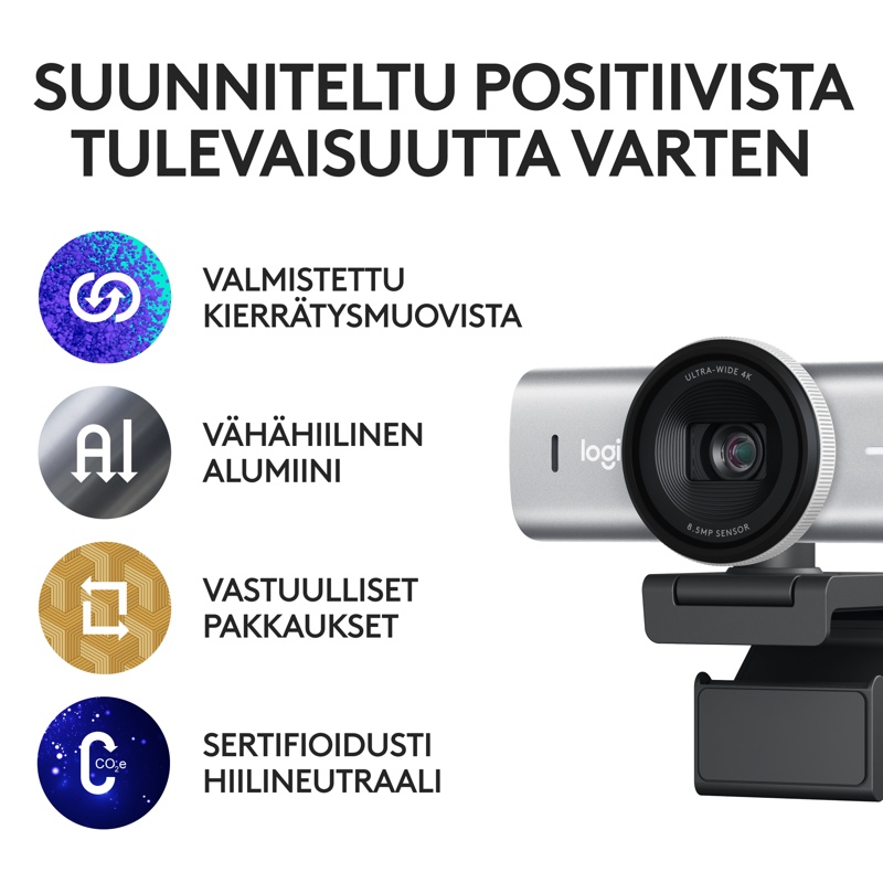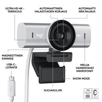 - Ultrateräväpiirtoinen Logitech MX Brio HDR-ominaisuudella ja tekoäly kuvanparannuksella