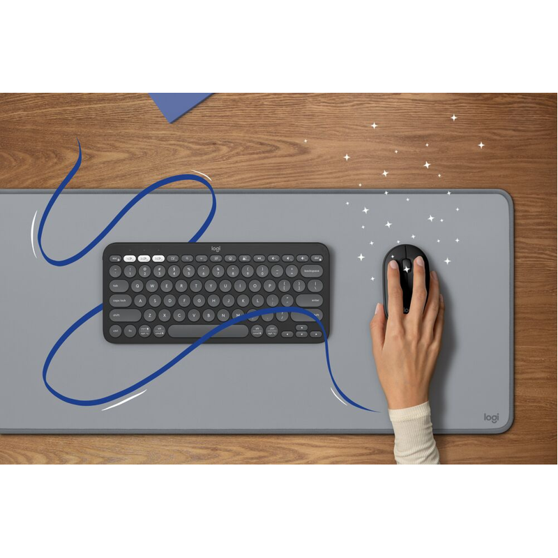 Haasta tylsyys kierrätysmuovista valmistetulla Pebble 2 Combolla. Pebble 2 Combossa on pelkistetty, ohut Pebble Keys 2 K380s -näppäimistö ja Pebble Mouse 2 M350s -hiiri, jotka on suunniteltu erottumaan joukosta. Voit pariliittää jopa kolme langatonta laitetta ja vaihda helposti niiden välillä yhdellä napin painalluksella. Pebble 2 Combon kevyen ja kannettavan rakenteen ansiosta voit sujauttaa näppäimistön ja hiiren laukkuun missä ja milloin tahansa.