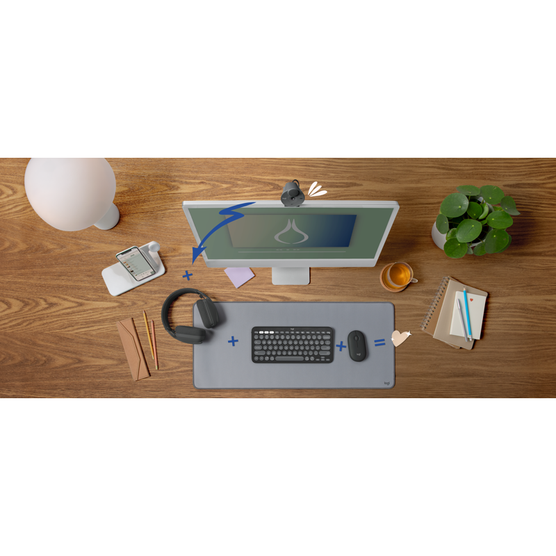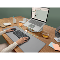 Pebble Keys 2 K380s -näppäimistön hiljaiset matalaprofiiliset näppäimet eivät naksahda painettaessa ja tuovat kannettavan tietokoneen kaltaisen näppäilytuntuman – kirjoittaminen on vaivatonta ja mukavaa.